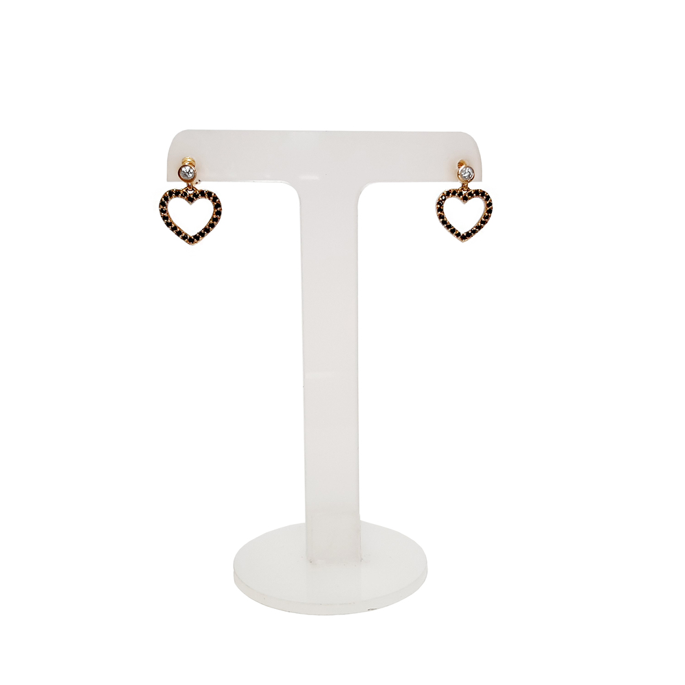Par de brincos em Ouro 18k. coração com diamantes negros